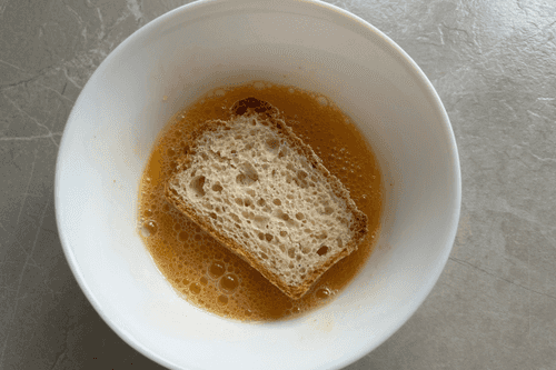 Dip the bread in the egg mixture.