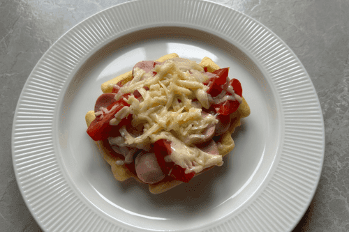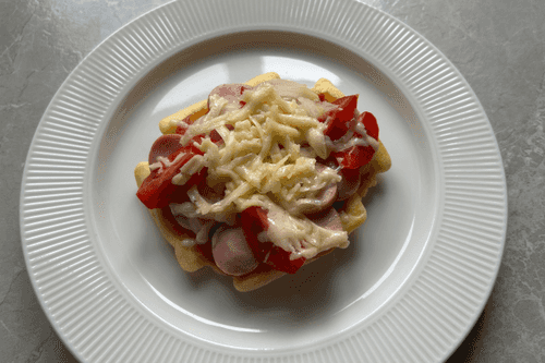 Pizza in a waffle maker is an original and quick alternative to classic pizza, perfect for kitchen experimenters. This recipe combines the lightness of waffle batter with the rich flavors of traditional pizza. The light dough made from eggs, mayonnaise, and flour becomes a crispy base for a flavorful topping of juicy cherry tomatoes, tender cheese, and tasty sausages. Ketchup adds zest to the dish while melted cheese creates a harmonious texture. This mini-pizza is ideal for breakfast, snacks, or a quick treat for guests. Thanks to the waffle maker, the cooking process takes just minutes and the result pleasantly surprises with its originality.