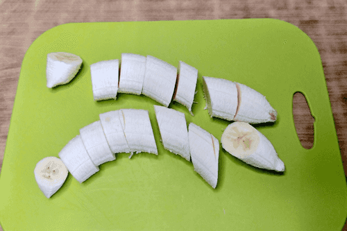 Cut the bananas into small pieces.