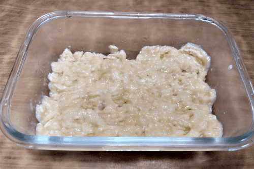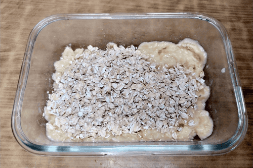 Mash the bananas with a fork in a baking dish.