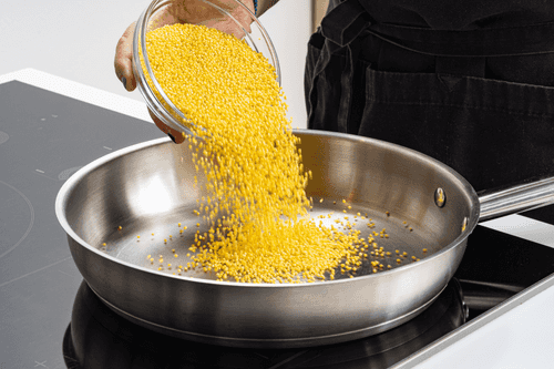 Roast the millet in a dry pan over medium heat for 5 minutes.