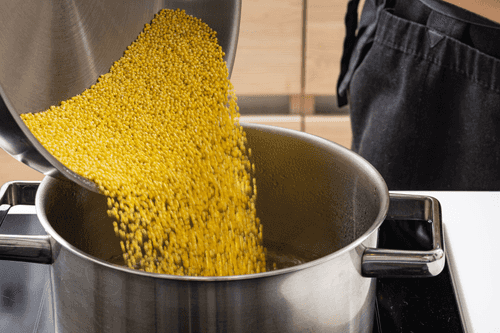 Boil water in a pot and add millet. Bring to a boil and cook over medium heat until the grains absorb the water.