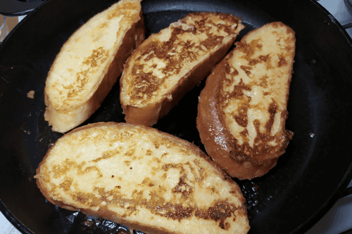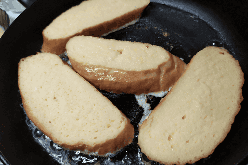 Place the bread on a hot skillet.
