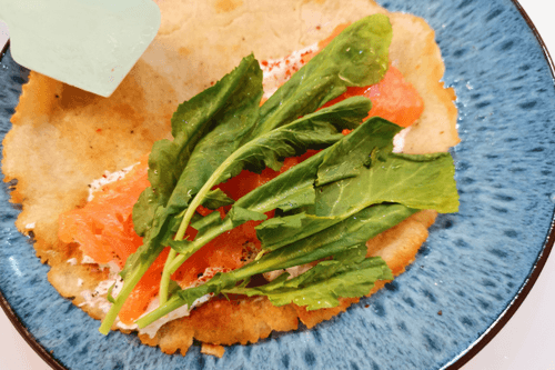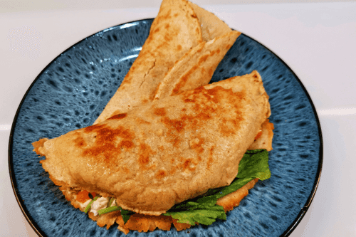 Oatmeal pancake is a hearty and healthy version of the classic pancake that originated from European cuisine and has become popular among health food enthusiasts. Its base is oatmeal flour, giving the dish a delicate texture and a subtle nutty flavor. Eggs and milk make the batter airy, while the combination of butter and olive oil adds an appetizing golden crust. The main highlight is the filling: cream cheese provides creamy softness, lightly salted salmon adds noble saltiness, and fresh watercress adds a hint of spiciness. This oatmeal pancake is perfect for breakfast or a light dinner, ensuring a balance of flavors and nutrients. It can be served as a standalone dish or complemented with fresh vegetables. It's an ideal choice for those who appreciate healthy and delicious food.