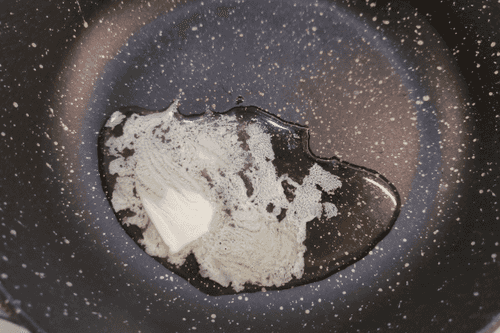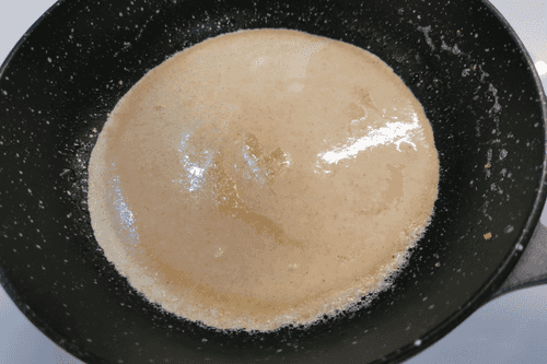 Once the bottom side is browned, flip it and reduce the heat to medium.