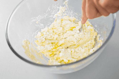 In a large bowl, add cottage cheese, egg, sugar, and flour, and mix with a fork until smooth. If the mixture is too sticky, add more flour, but no more than half a tablespoon.