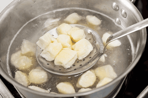 Bring water to a boil in a small pot. Carefully drop the dumplings into the boiling water one by one. Cook, gently stirring with a slotted spoon, until all dumplings float to the surface, plus one more minute.