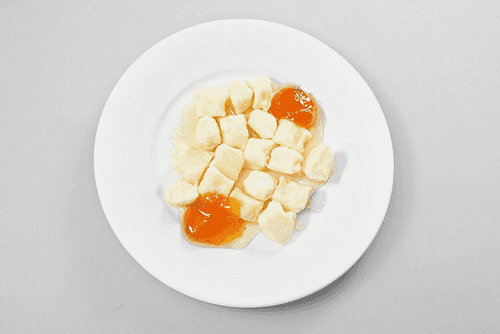 Place the ready dumplings from the pot onto plates and drizzle with jam, such as apricot. They can be served hot or warm.