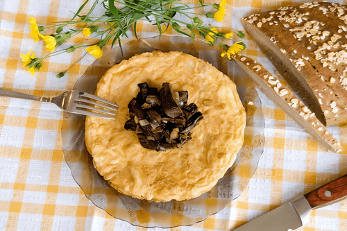Omelette with mushrooms, onions and herbs