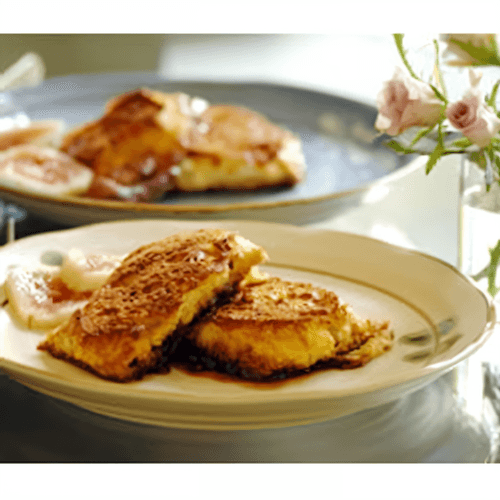 Toast crème brûlée is an exquisite dessert inspired by classic French crème brûlée. It combines the tenderness of creamy bread infused with vanilla and orange notes with the caramel sweetness of brown sugar. This dessert is perfect for a morning breakfast or a cozy tea time. Traditionally, it is made by baking a baguette soaked in a mixture of cream, eggs, and liqueur, resulting in an airy texture and rich aroma. The recipe's origins lie in French cuisine, where crème brûlée is famous for its crispy caramel crust. In this version, the crunch comes from the baked bread, while butter adds richness to the flavor. It is served warm, often with berries or additional caramel, turning each serving into a true gastronomic delight.