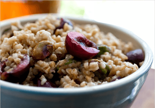Oatmeal with berry-pistachio sauce