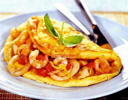 Place seafood on the omelet and fold it in half. Cook for another 2 minutes.