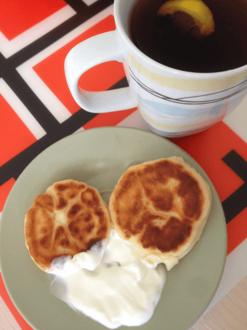 Sprinkle some flour on a plate. Place one tablespoon of dough on the plate, coat it in flour, and fry on both sides in oil over low heat.