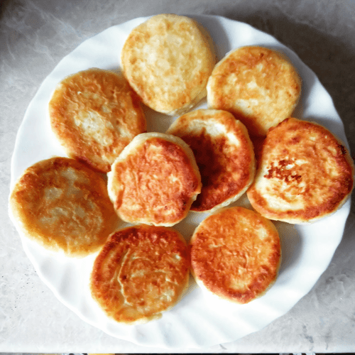 Make cheese pancakes, coat them in flour, and fry in a small amount of vegetable oil.