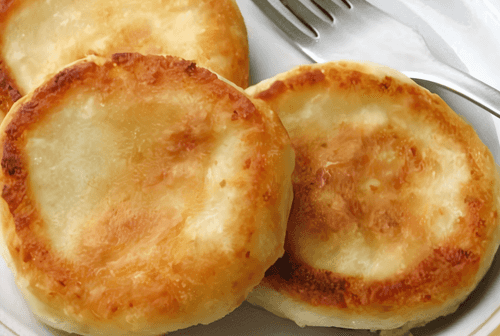 Place the hot cheese pancakes on a plate and sprinkle with powdered sugar.