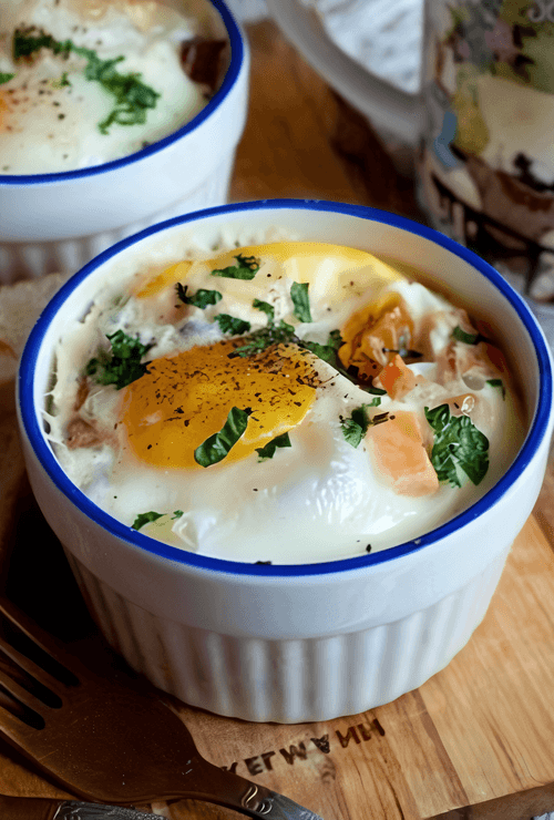 Baked eggs with bacon and tomatoes are a refined dish of European cuisine that combines rich flavors and simplicity of preparation. The origins of this recipe trace back to traditional breakfasts in France and the UK, where eggs and bacon consistently take center stage. Baked with juicy tomatoes, they acquire a special tenderness and a slight tanginess. Bacon adds crunch and zest, while parsley refreshes the overall composition. This dish is perfect for a hearty breakfast or a light dinner. It can be served with crispy bread, greens, or even a light sauce. Simple yet exquisite, it becomes a true find for connoisseurs of classic flavors and cozy home meals.