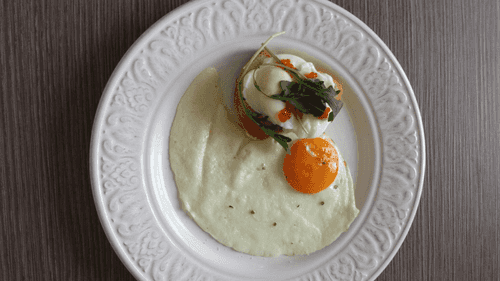 Poached eggs on toast with red caviar and arugula is a refined dish of French cuisine that harmoniously combines tenderness, sophistication, and rich flavor. Historically, poached eggs emerged in France as part of gastronomic art, and their pairing with crispy rye bread, peppery arugula, and salty caviar makes this breakfast truly luxurious. The delicate, slightly runny yolk enveloping the toast is complemented by the freshness of arugula and the elegant taste of red caviar. Perfect for morning awakenings or leisurely Sunday breakfasts. This dish not only delights the taste buds but is also aesthetically pleasing, turning an ordinary meal into a true culinary ritual.
