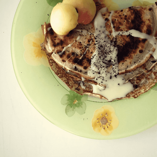 Thin pancakes with cinnamon and condensed milk