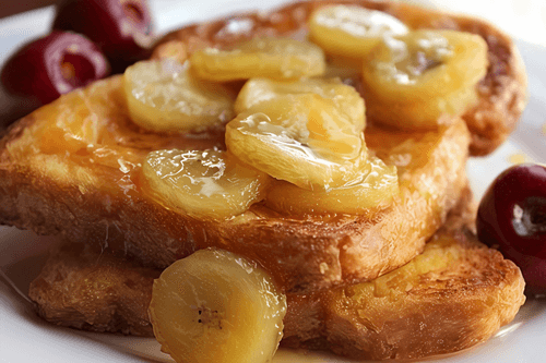 Banana-caramel sauce toasts are an exquisite dessert that combines a light crispy crust with a tender, sweet filling. This recipe, inspired by European traditions, evokes a cozy morning in a small café on a quiet street. The taste of melting caramel intertwined with the softness of banana creates a harmony of sweetness and light creamy tenderness. Toasted bread soaked in aromatic egg cream takes on a golden hue and gains an appetizing crunch. Perfect for breakfast or as an exquisite treat with a cup of fragrant coffee. These toasts can be decorated with nuts, berries, or delicate cinnamon powder, adding new flavor nuances. The simplicity of preparation makes them accessible even for novice cooks, while the result consistently delights with richness of flavor and warm atmosphere of coziness.