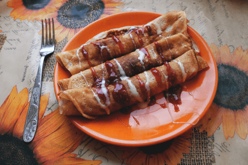 Pancakes made with sour milk, raspberry jam, and condensed milk are an exquisite combination of tenderness and sweet fruity freshness. This recipe has roots in Russian cuisine, where pancakes symbolize warmth, coziness, and family traditions. Sour milk gives the batter lightness and airiness, while baking soda ensures softness and a porous texture. Raspberry jam adds a bright sweet-sour note, and condensed milk makes the flavor even richer and more delicate. Perfect for breakfast or a cozy tea time, these pancakes delight both adults and children. They can be served with hot tea or fresh berries, enjoying the harmony of flavors in every bite.