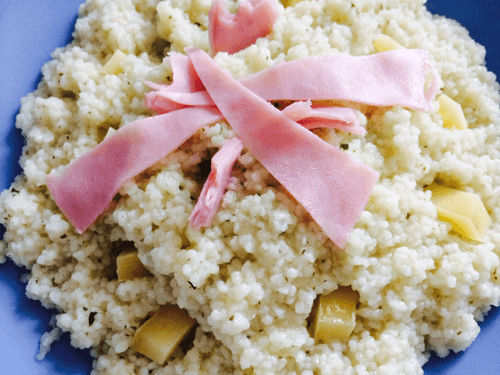 Couscous with cheese and ham is a simple yet exquisite dish of Moroccan cuisine that combines the tenderness of grains with the rich flavor of cheese and the spiciness of ham. Traditionally used in North Africa, couscous here transforms into a cozy and hearty dish filled with the aromas of oregano, basil, and olive oil. The cheese melts on the hot grains, enriching them with a creamy texture, while the ham adds a salty accent. This dish is perfect for a cozy home dinner or as a quick yet elegant treat for guests. It can serve as a main or side dish and easily adapts to tastes by adding fresh vegetables or sauces.