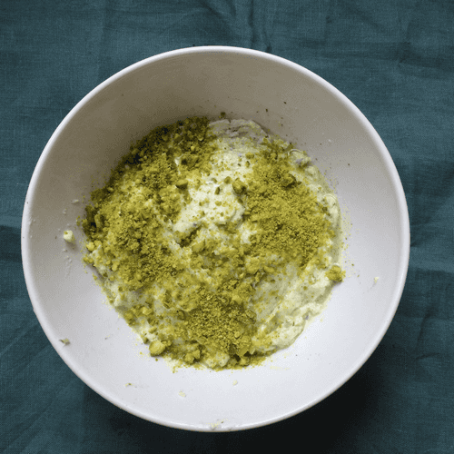 Sprinkle crushed green pistachios on top