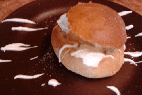 Meanwhile, cut off the top of the bun and scoop out the inside with a spoon.