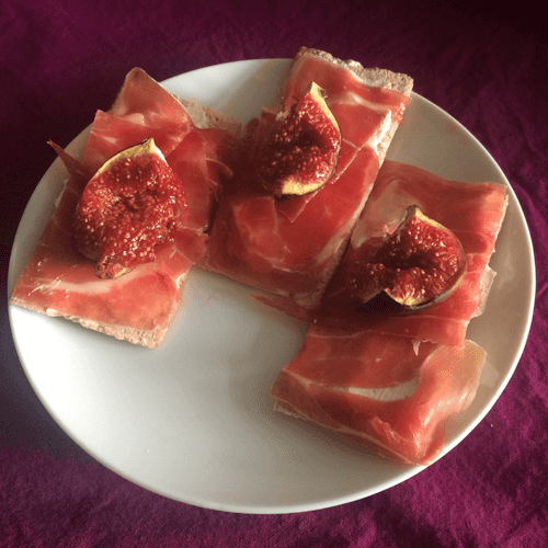 Morning crackers with ham and figs