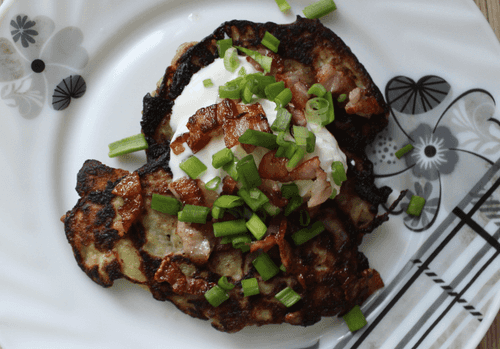 Place the boxes on a plate. Top with sour cream, bacon, and green onions. Done.
