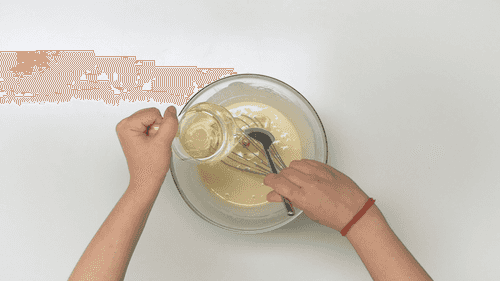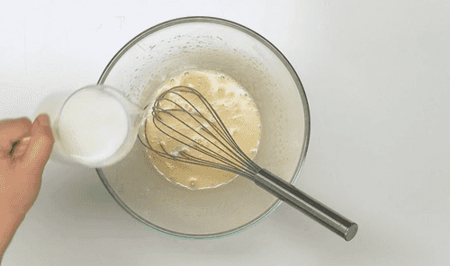 Gradually add half of the flour to avoid lumps. Pour in the remaining milk and gradually add the flour as well.