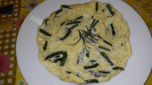 Country-style omelette with garlic feathers