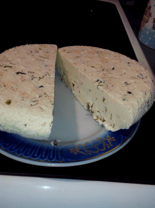 Put in the refrigerator for a few hours. Excellent with black bread and tomatoes. Tastes like Adyghe cheese with herbs.