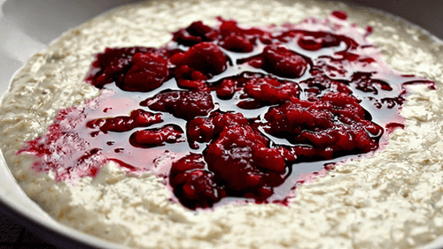 Oatmeal with milk and jam is a cozy dish that warms the soul. Its roots trace back to ancient European breakfast traditions where oats were considered a source of strength and energy. The delicate, creamy texture of the porridge perfectly complements the natural sweetness of berry jam, creating a harmonious balance of flavors. Raspberry, currant, or blueberry jam adds freshness and a fruity note, turning a simple dish into a morning delight. This porridge is not only nutritious but also healthy since oats are rich in fiber and berries are packed with vitamins. It's an ideal option for a lively start to the day or a cozy snack when craving something homemade and warm.
