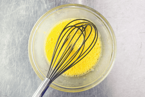 Whisk the eggs in a bowl until smooth, but do not salt or pepper.