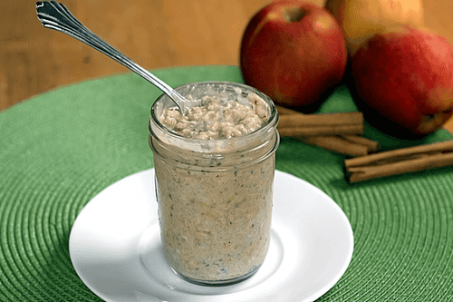 Open, add apple puree (you can also add pieces of fresh apple if desired) and mix gently.