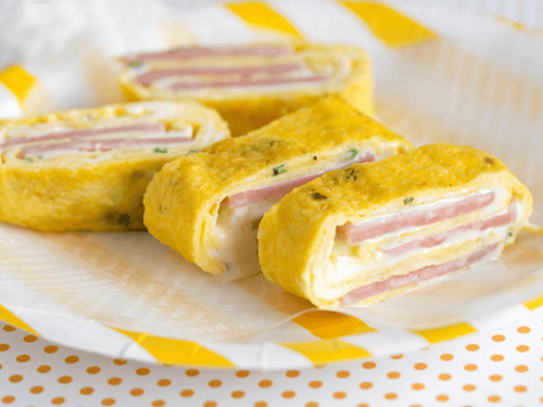 Pour a little egg mixture into a heated small diameter pan. A thin pancake will form. Watch to ensure it doesn't bubble. If it does, poke the bubbles and lower the heat, as the pan is likely too hot.