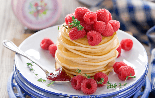 Pancakes with raspberry jam are a cozy treat from America, symbolizing a warm home breakfast. These airy cakes are slightly sweet with a crispy crust and soft center, perfectly paired with the aroma of fresh raspberry jam. The vanilla hint in the batter complements the berry's delicate tartness, while honey adds depth to the flavor. Served with powdered sugar and banana slices, pancakes become a true work of art, ideal for cozy morning meals or romantic breakfasts. Their ease of preparation has made them popular worldwide, remaining a universal dessert for both children and adults.