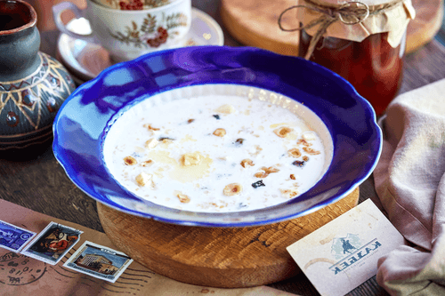 Oatmeal with walnuts and dried fruits is a harmony of taste and health born from European culinary traditions. Oats, valued for their nutrition since ancient times, become soft and tender when combined with milk. The addition of dried fruits—figs, raisins, apples, and prunes—fills the dish with natural sweetness and depth of flavor. Nuts, especially walnuts and hazelnuts, give the porridge a crunchy texture, while honey adds a light caramel note to finish it off. This is the perfect breakfast that energizes you, improves digestion, and provides a pleasant sense of coziness. It is enjoyed warm while savoring the balance of sweet and nutty flavors that awaken your strength for the whole day.