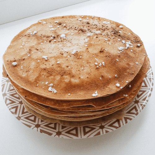 Spread butter on each pancake. Sprinkle with powdered sugar and cinnamon.
