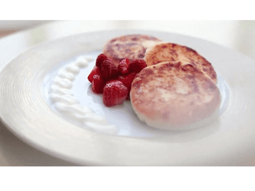 With wet hands, shape the mass into syrniki (like in the photo) and roll them in flour.