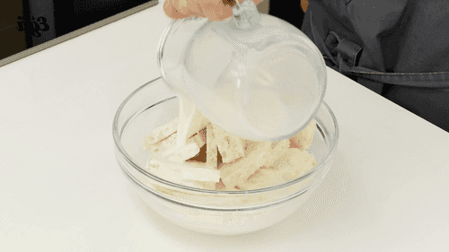 Soak the white bread crumb in milk and let it sit for 5-10 minutes.