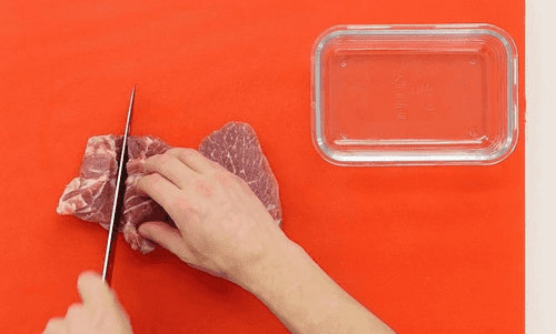 Свиную шейку, грудинку, бекон и печень нарезать крупными кубиками.