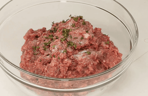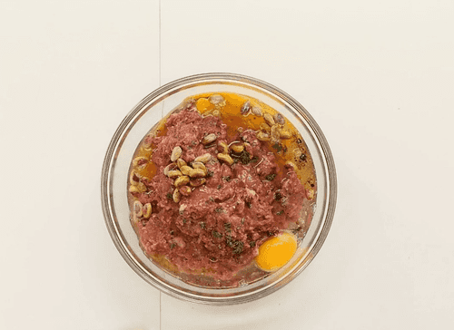 Добавить мелко нарезанные листья с 3 веточек тимьяна, белое вино, коньяк и фисташки. Перемешать все это с мясом.