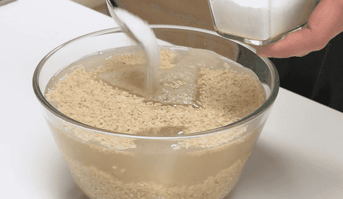Девзиру тщательно перебрать, чтобы не осталось мелких камней и щепок. Сложить рис в миску, добавить две столовые ложки каменной соли и залить двумя литрами холодной воды. В таком виде рис должен простоять хотя бы полчаса. Как только вы зальете рис водой, он станет почти прозрачным, и определить, достаточно ли замочился рис, можно по внешнему виду: когда он станет матовым, можно промывать, иначе зерна могут раскрошиться.