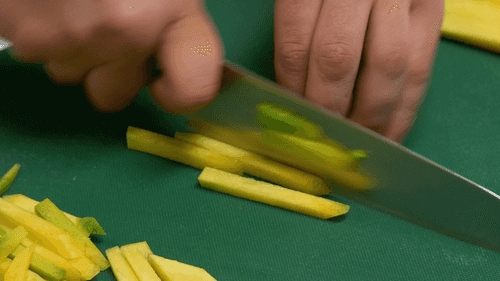 Нарезать морковь толстой соломкой, во всю длину клубня и толщиной три-четыре миллиметра. Лук нарезать не слишком тонкими полукольцами или чуть мельче.