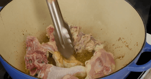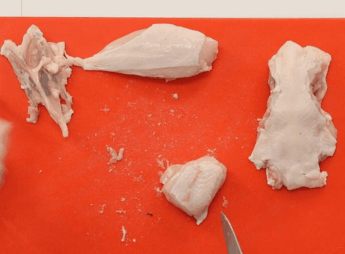 Cut the chicken into 12 pieces: legs, thighs, wings, and breasts in half.