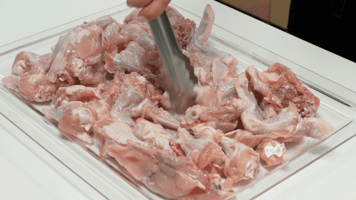 Куриные кости выложить на противень и отправить в духовку, разогретую до 240 градусов, на 20 минут.