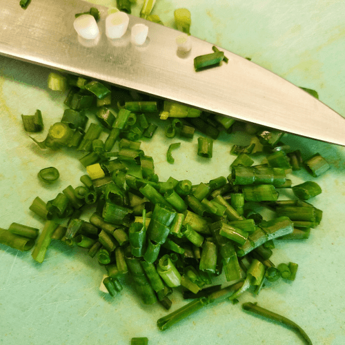 Нарезать зеленый лук. Добавлять его в отдельные порции при подаче.
