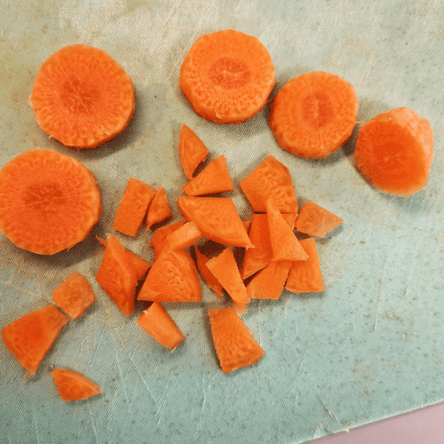 Нарезать морковь так, как больше нравится ребенку. Можно нарезать разными фигурками, кружочками или просто мелко.