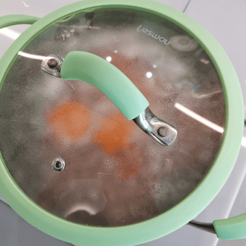 Поставить на большой огонь, накрыть крышкой и варить до закипания.